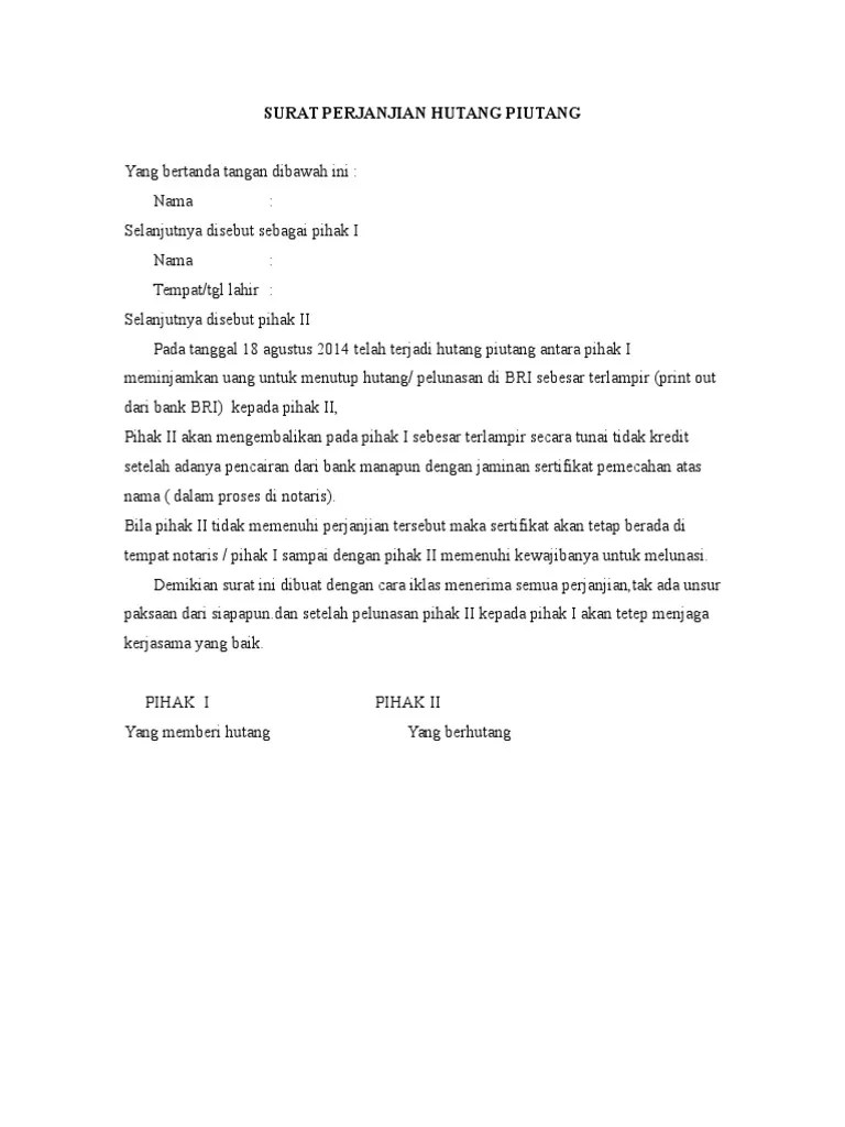 Surat Hutang Doc : Doc Surat Perjanjian Hutang Naila N K Academia Edu - Karena memang materai adalah hal yang sakral di negara ini hehe.. Dengan berbagai contoh surat yang telah banyak akan membantu kamu untuk mengetahui contoh surat resmi yang baik dan benar. Berikut beberapa font yang sebaiknya tidak dipilih untuk membuat surat resmi. Untuk surat contoh pernyatan bermaterai hanya dapat ditampilkan versi gambar scan. Yang bertanda tangan di bawah ini: Selanjutnya disebut pihak kedua melalui surat perjanjian ini, disetujui oleh kedua belah pihak dengan …